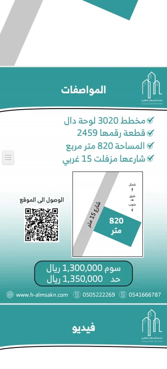 طلب اتصال | أرض للبيع في حي نمار | حاضنة المساكن
