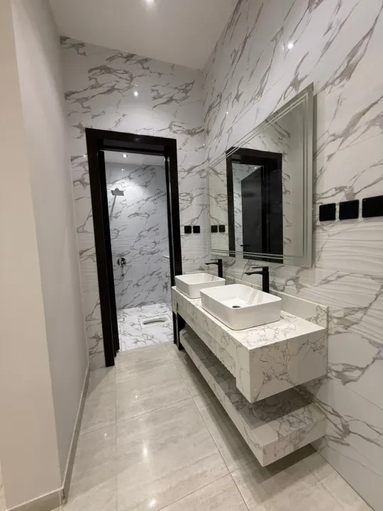 🏡 تاون هاوس فاخرة للبيع في حي الموسى حديثة التصميم مكونة من دورين أدوار بمساحة واسعة تناسب احتياجات الأسرة العصرية: • 4 غرف نوم (منها ماستر بدورة مياه). • مجلس رجال + مقلط + صالة رئيسية. • حمام رجال مع مغاسل أنيقة + حمام نساء مع مغاسل